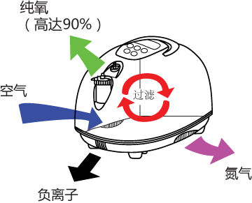 Oxy Plus ( 制氧机) 以空气为原料,产生高达90%的纯氧。